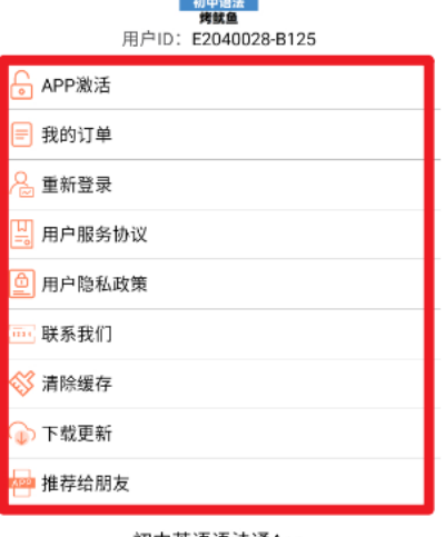 5、进入【我的】页面,可进行应用激活、订单查看、重新登录,以及管理隐私政策、联系客服、清除缓存和更新应用等操作。