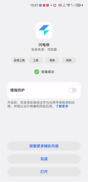 5、当出现绿色对勾提示时,即表示安装成功,点击打开即可使用。