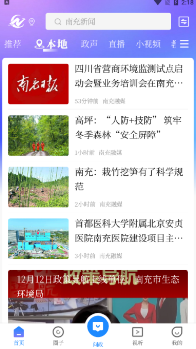 是一款由南充市融媒体中心打造的本地新闻APP。集新闻资讯、音视频直播、短视频、社区服务、网络问政等为一体。以大容量高密度的信息资讯,快捷、新颖、切合实际地服务于寻常百姓家。