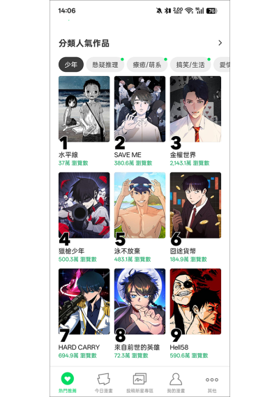 WEBTOON是LINEWebtoon推出的台湾地区专属应用,主打繁体中文漫画资源,专为喜爱全彩漫画的用户量身打造。软件汇聚海量优质漫画,题材多元、画质清晰,兼顾便捷性与趣味性,让用户随时随地都能享受沉浸式漫画阅读体验,满足不同漫画爱好者的阅读需求。