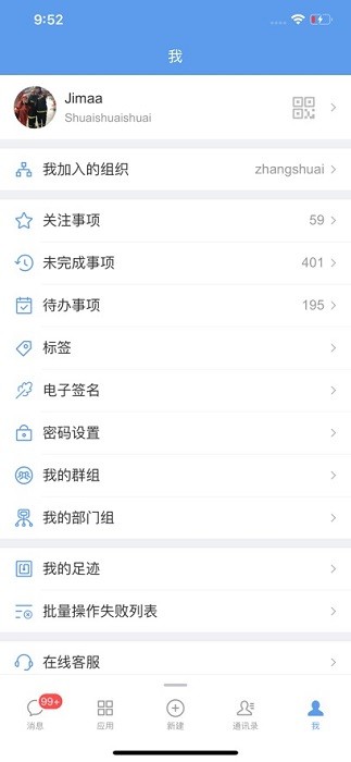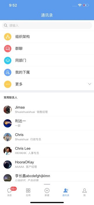 统一组织管理:将组织的内部员工与外部人员(供应商、经销商、代理商、客户等)统一在一个平台办公