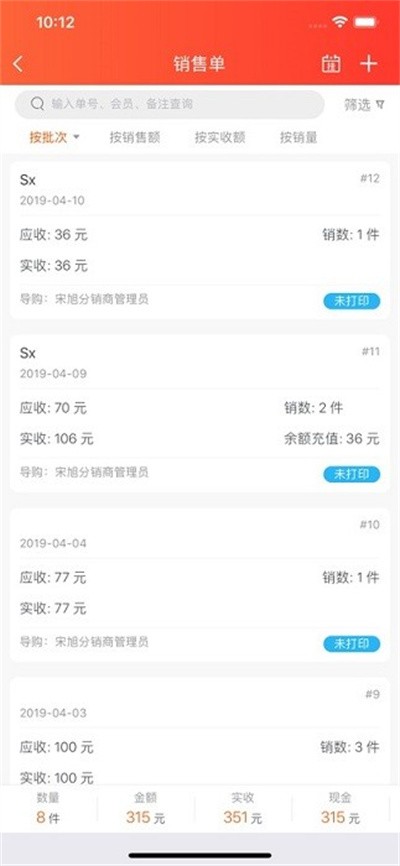 每日销售情况日记详细展示,自带积分、充值系统