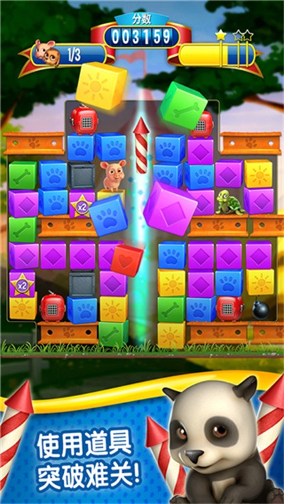 1、围绕解救宠物展开,消除砖块与解救目标相结合,让经典消除机制更具故事感与目标性。