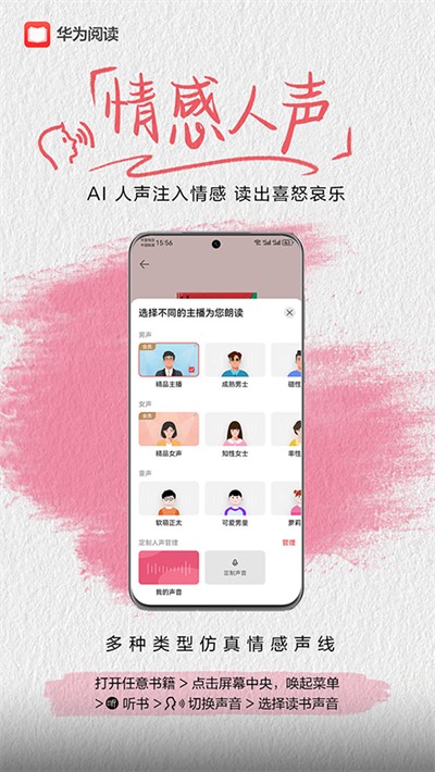 【2】情感化朗读功能搭配定制人声,提供磁性阳光乖萌等多元音色,音色自然流畅,解放双眼,听书状态下也能感受细腻的阅读氛围。