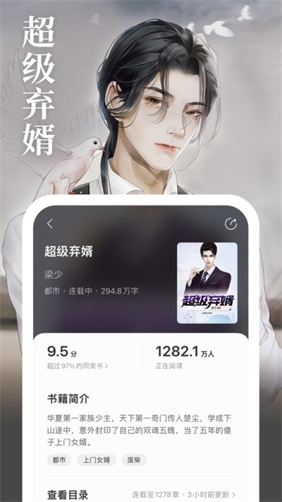 3、找到心仪小说后,进入书籍详情页,可查看评分简介等信息,左滑即可进入阅读界面,开启阅读。