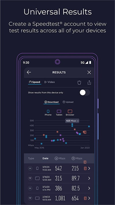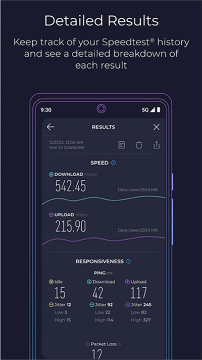 Speedtest在线测速app以极简操作与精准检测为核心,一键完成多维度网络指标测试。智能节点搭配直观图表呈现,让用户快速掌握网络状况,为网络使用与维护提供可靠依据。