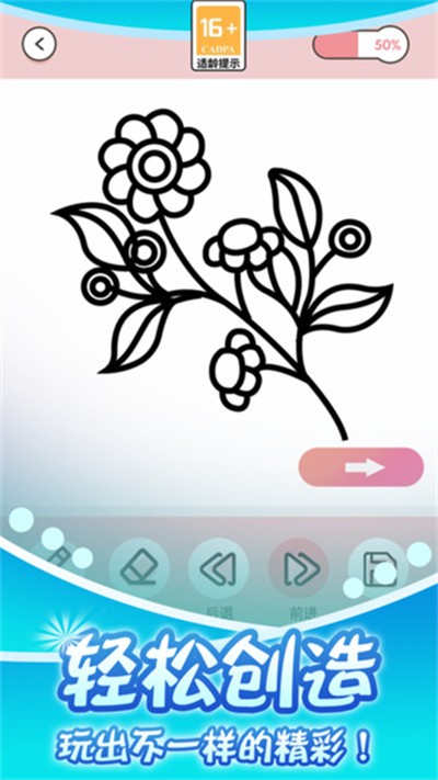 2、软萌清新的软萌卡通风格,搭配简单友好的交互设计,专为低龄孩童打造舒适的绘画启蒙氛围。