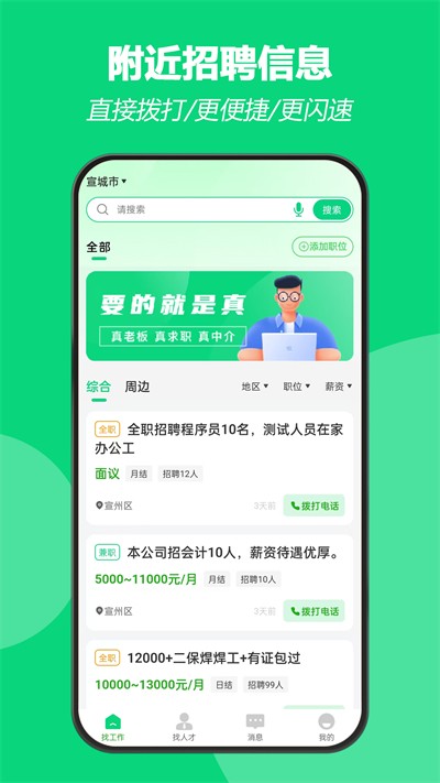 2、附近岗位自动定位推送,基于当前位置展示周边用工信息,适配本地灵活就业需求。