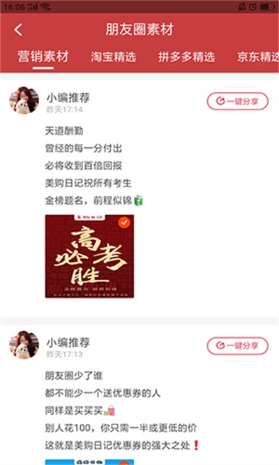 1、进入实时线报的每日线报页面,可查看淘宝京东等平台的优惠商品,领取补贴券后直接购买,还能复制文案一键发单。