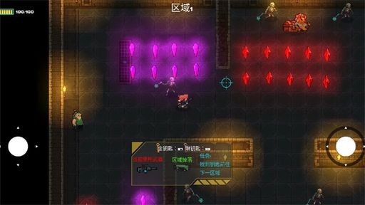3、探索地牢场景,找到钥匙解锁关卡,规避紫色陷阱等危险,前往下一区域继续挑战。