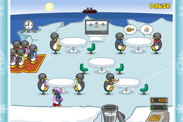 1、Penguin Diner游戏主界面,点击Play Game按钮,进入餐厅经营关卡。
