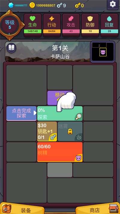2、移动到目标格子后,点击探索按钮,解锁地图迷雾区域。