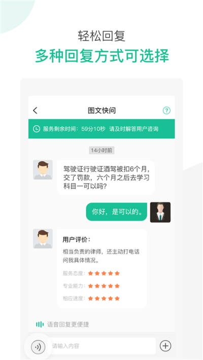 2、多元化线索处理,高效沟通。平台提供多种线索处理方式,助力律师与用户快速、便捷沟通对接,精准对接需求,是律师打造个人执业版图、拓展客户资源的实用办公助手。
