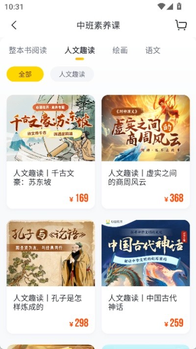 3、向下滑动页面可浏览素养课程专区,九元即可畅享多种精选课程内容。