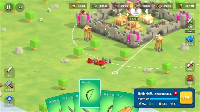 3、应对入侵敌人,派遣单位作战,击败敌人后获取宝箱奖励,收集额外资源,同时提升城镇防御能力,保障发展安全。