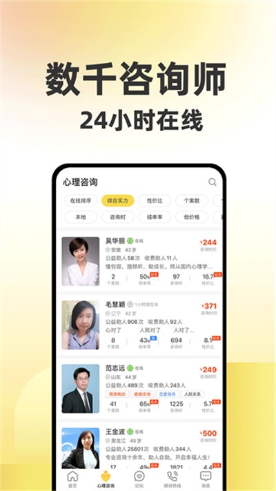 1.咨询师经人工筛选与动态分级,结合大数据排名展示服务时长等信息,选择更透明可靠。