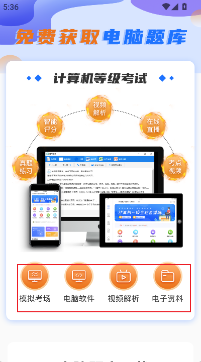 等考宝典计算机考试app是一款专为计算机等级考试备考打造的高效学习软件,集题库练习、视频教学、考点解析与模拟测试于一体,全面覆盖一级二级考试内容,通过系统化学习与实战训练相结合的方式,帮助快速掌握重点知识并提升应试能力,适合零基础到进阶阶段的学习需求,助力顺利通过各类计算机等级考试。