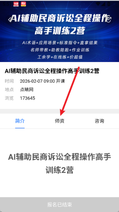 4、在课程详情页面中点击师资选项进入教师信息与资质展示页面查看内容。