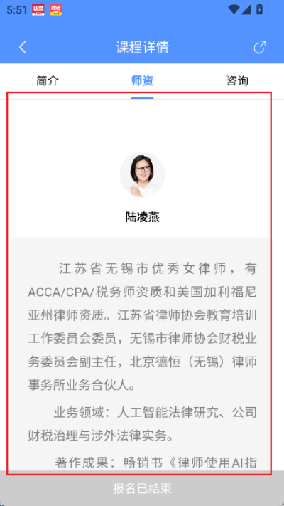 5、进入师资页面后即可查看对应课程教师的详细资质与相关介绍信息内容。