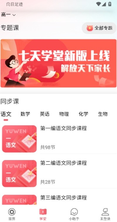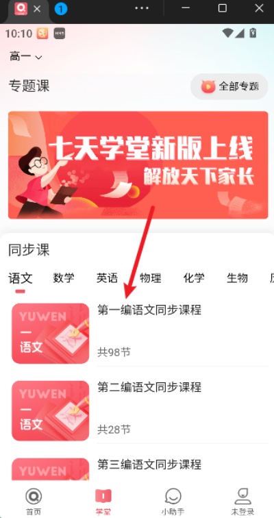 1、打开七天学堂进入主页,在功能导航中选择“同步课”入口并点击进入相关课程学习页面。