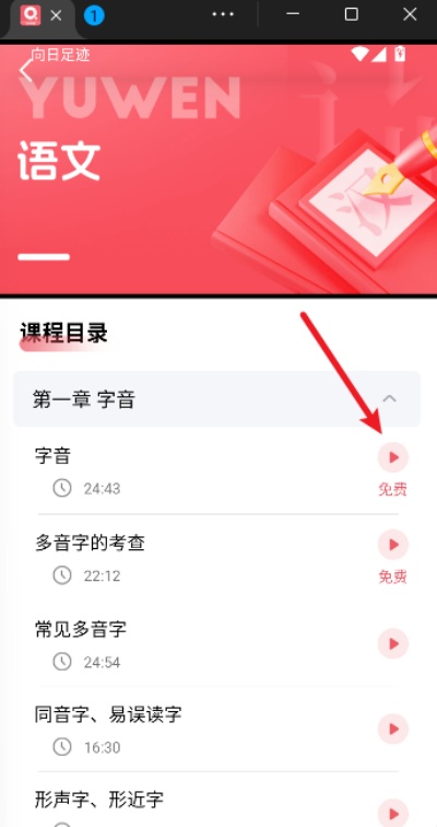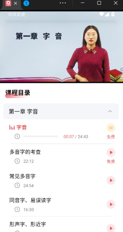 4、视频加载完成后即可顺利播放课程内容,进行语文知识学习与同步课堂内容观看。