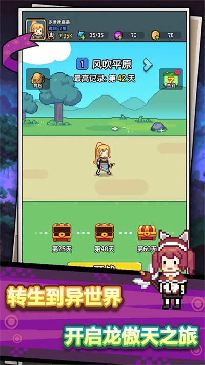 龙傲天模拟器是一款集合了异世冒险、肉鸽、角色养成的单机像素手游。你一头扎进异世界,主线里一关60天,每天蹦出不同事件。运气事件看脸出大吉,可能直接升一级。怪物事件跳出一两只小怪,打死给经验和钱。挑战事件更刺激,恶魔挑战让你选打怪还是打人。25天来个小BOSS,40天又来个,60天压轴大戏等着你。经验条一满,三个技能里挑一个,搭配方式多到数不清。