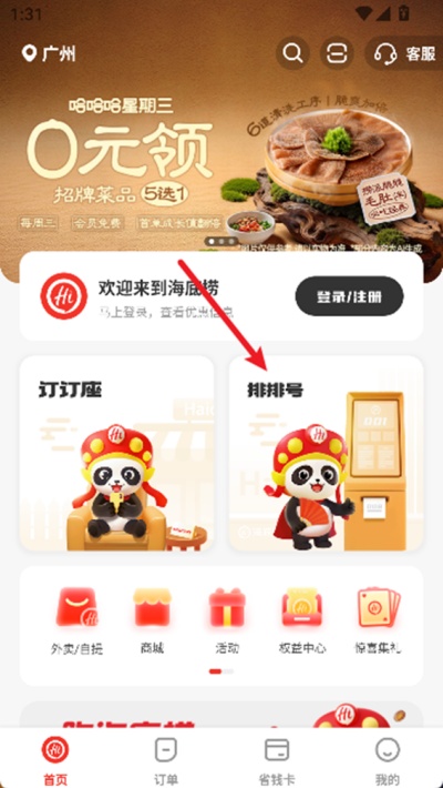 3、切换地区成功后,在功能页面中点击“排排号”按钮,进入排队取号服务界面。