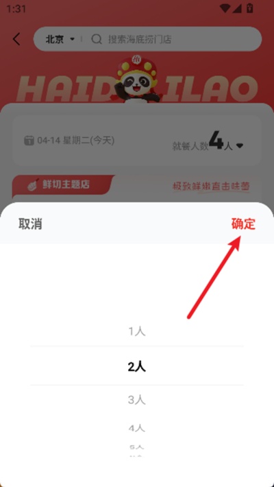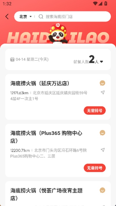 5、确认人数后进入门店选择页面,根据实际需求选择计划前往的海底捞门店地点并完成选择操作。