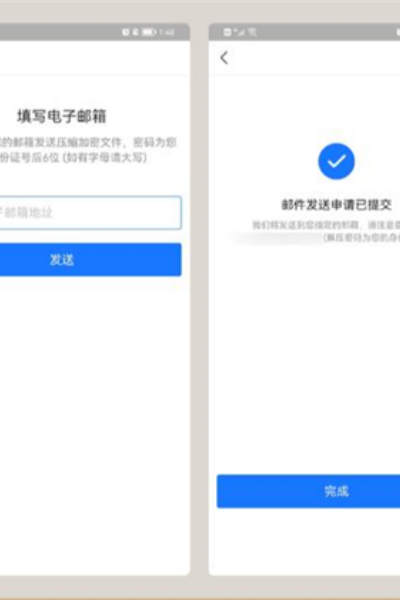 3、输入邮箱地址后提交申请,支付宝将账单文件打包成压缩包并以邮件形式发送至填写的邮箱,解压密码为本人身份证后六位。