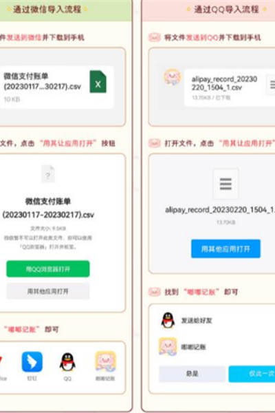 支持从微信、支付宝、鲨鱼记账、喵喵记账、女生记账等多个主流平台导入账单数据,所有财务信息集中汇总,告别逐一手动录入的繁琐操作。