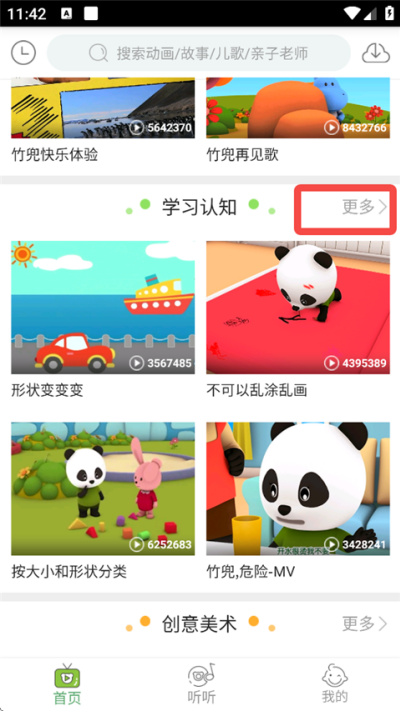 4、返回首页进入“学习认知”板块,点击“更多”查看完整认知内容分类。