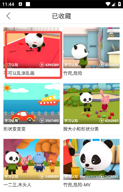 6、进入“已收藏”页面选择对应内容,点击即可进入认知视频播放界面。