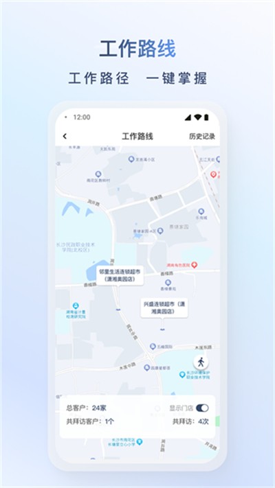 可视化呈现客户分布,精准定位客户位置,快速查找周边客户,优化外勤工作流程。