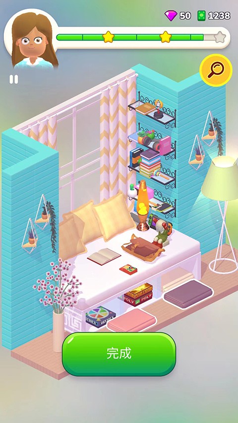 4、完成关卡后应合理利用奖励资源,例如星星与钻石,用于解锁新场景与家具样式,持续提升整体设计能力与空间表现。