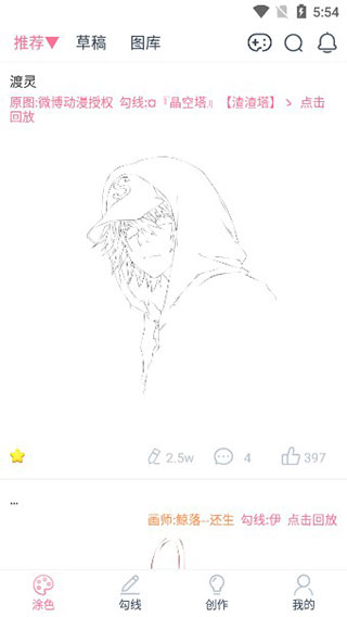 1、轻轻打开漫芽糖绘画,首先映入眼帘的是琳琅满目的精致图库,海量线条纯净的底稿正静静等待着你用灵感为它们披上彩衣。