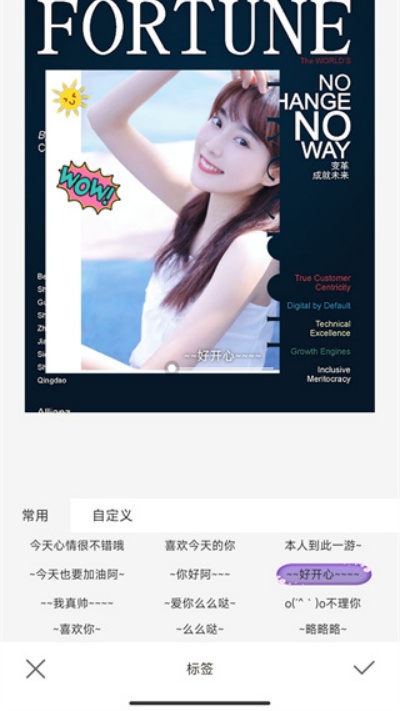 7、最后可选择或自定义标签内容,用于表达情绪与记录心情,使照片呈现更加完整自然。