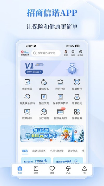 招商信诺是一款专业综合性健康服务软件,专注为用户打造便捷的保险办理与健康管理一体化服务,划分个人保险、团队服务、健康医疗、家庭保单管理、诺米商城五大核心板块,简化保险办理流程,大数据智能测算技术,科学评估保障缺口并推荐适配产品,支持全家保单统一管理、线上业务办理与多元化健康服务。