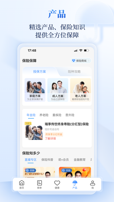 融合保险、健康、商城等多项服务,满足日常保障消费与健康养护多重需求。
