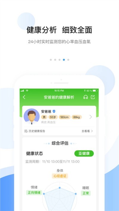 1、穿戴设备与软件深度联动,实现全天候不间断生理监测,数据采集覆盖维度全面。