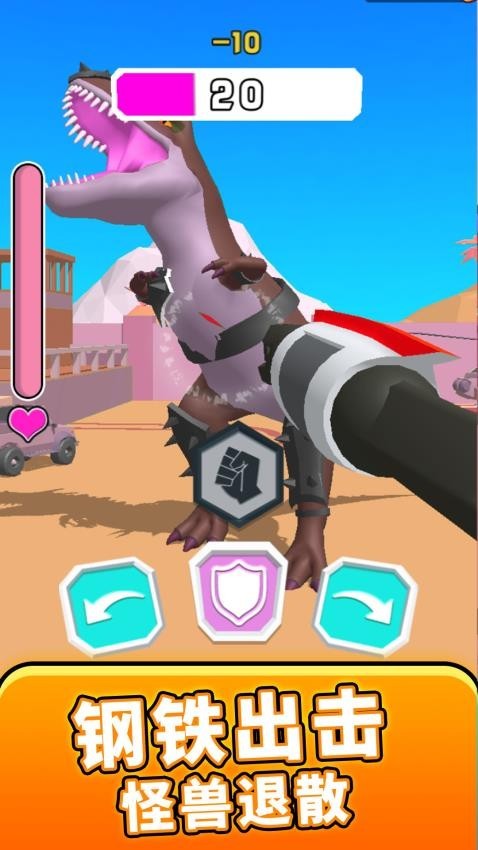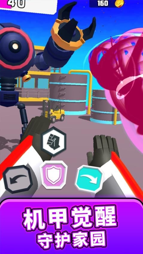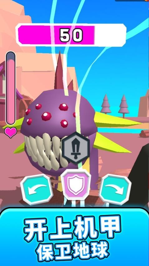 2、战斗中根据提示点击左右方向的蓝色闪避按钮,躲避敌方机器人的攻击。