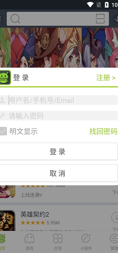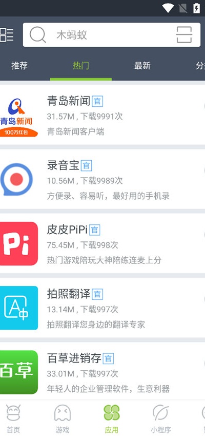 3、登录成功后可在底部导航栏自由切换游戏、应用以及小程序等不同资源分类。