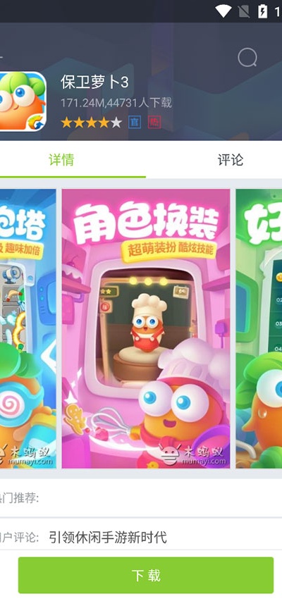 4、进入任意软件或游戏详情页后,可查看介绍与截图信息,并支持直接下载安装与互动评论。