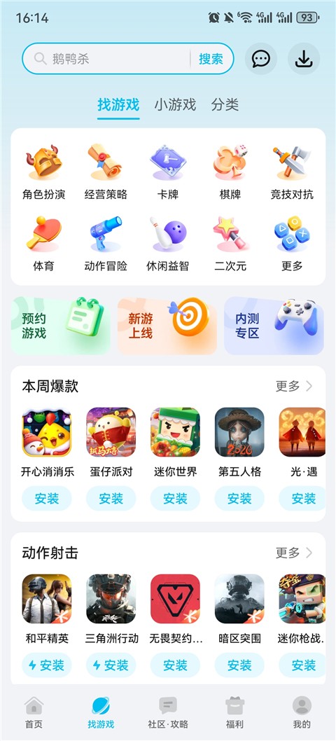 2、【新游抢先体验】支持预约与内测游戏下载功能,让用户能够提前体验新上线游戏内容,掌握最新游戏发展动态。