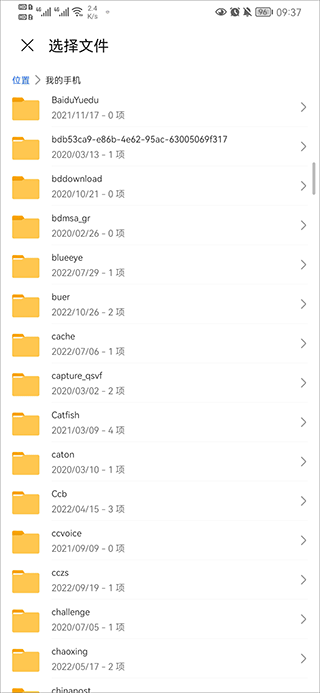 3、在手机存储目录中浏览文件位置,找到需要上传的内容后进行勾选确认,支持单个或多个文件选择,操作方式较为直观。