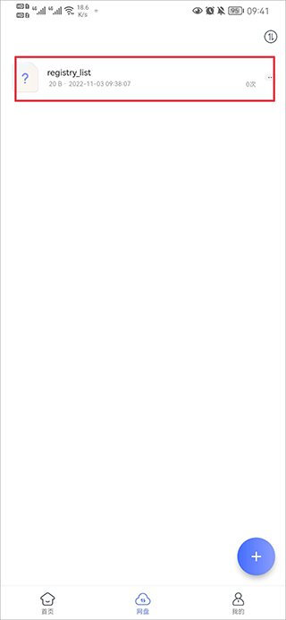 1、打开应用进入网盘界面,点击右下角“+”号按钮进入添加页面,该入口用于创建上传任务或新建文件分类,方便后续整理文件内容。