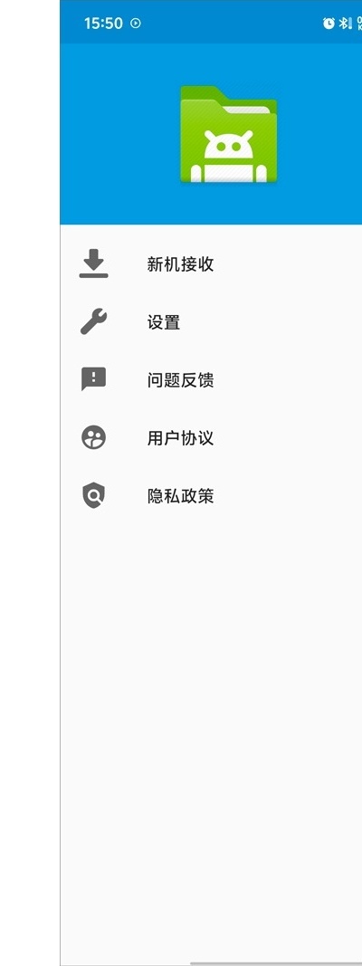2、点击左上角菜单按钮,在选项中选择“新机接收”模式准备接收文件。