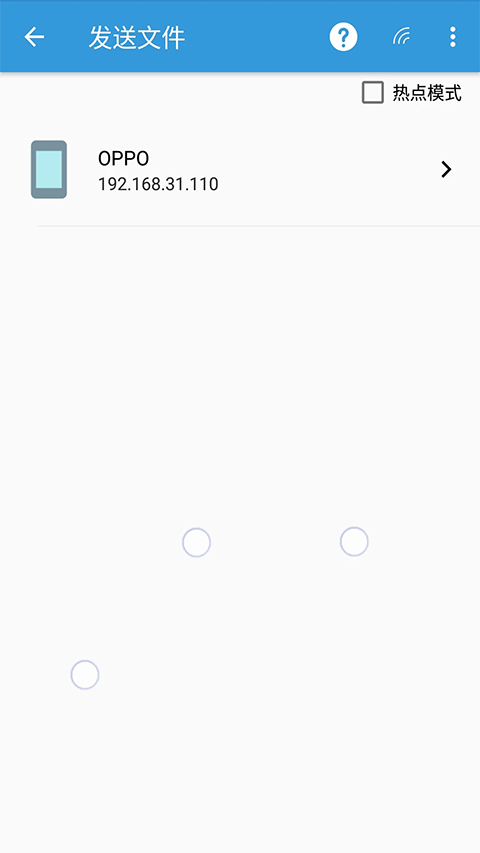 3、开启热点模式后等待旧设备搜索连接,匹配成功后点击“传送”即可开始传输。