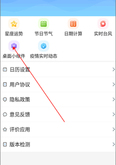 2、进入设置界面,在设置中点击桌面小组件。
