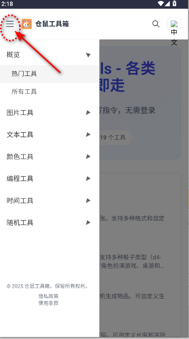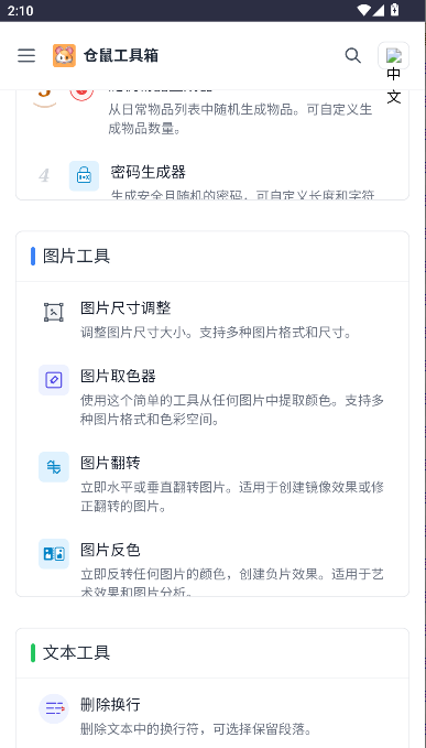 1、打开仓鼠工具箱应用后,首页会展示多种常用工具入口,涵盖文件处理、图片编辑、计算辅助等不同类型功能,方便快速浏览选择。