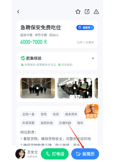 4、浏览职位列表找到感兴趣的岗位,点击投简历与招聘方开展初步交流。